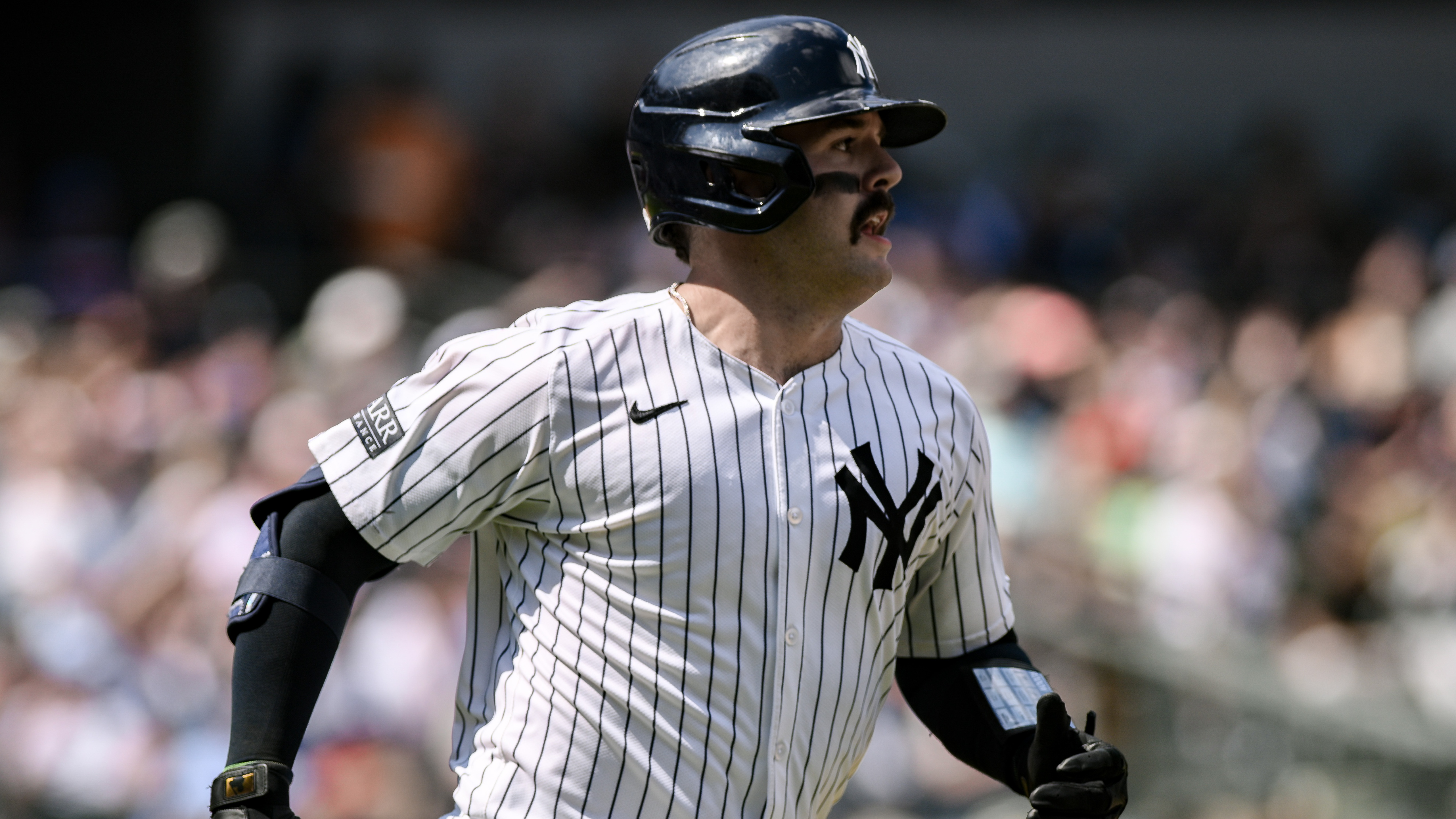 Austin Wells drives in four, Aaron Judge reaches four times in Yankees' Game 1 win over RangersJazz Chisholm had the Bombers' lone homer8/10/2024, 8:07 PMJohn FlaniganFreelance Editorial ProducerNew York Yankees catcher Austin Wells (28) hits a two RBI single against the Texas Rangers during the fourth inning at Yankee Stadium / John Jones - USA TODAY Sports
