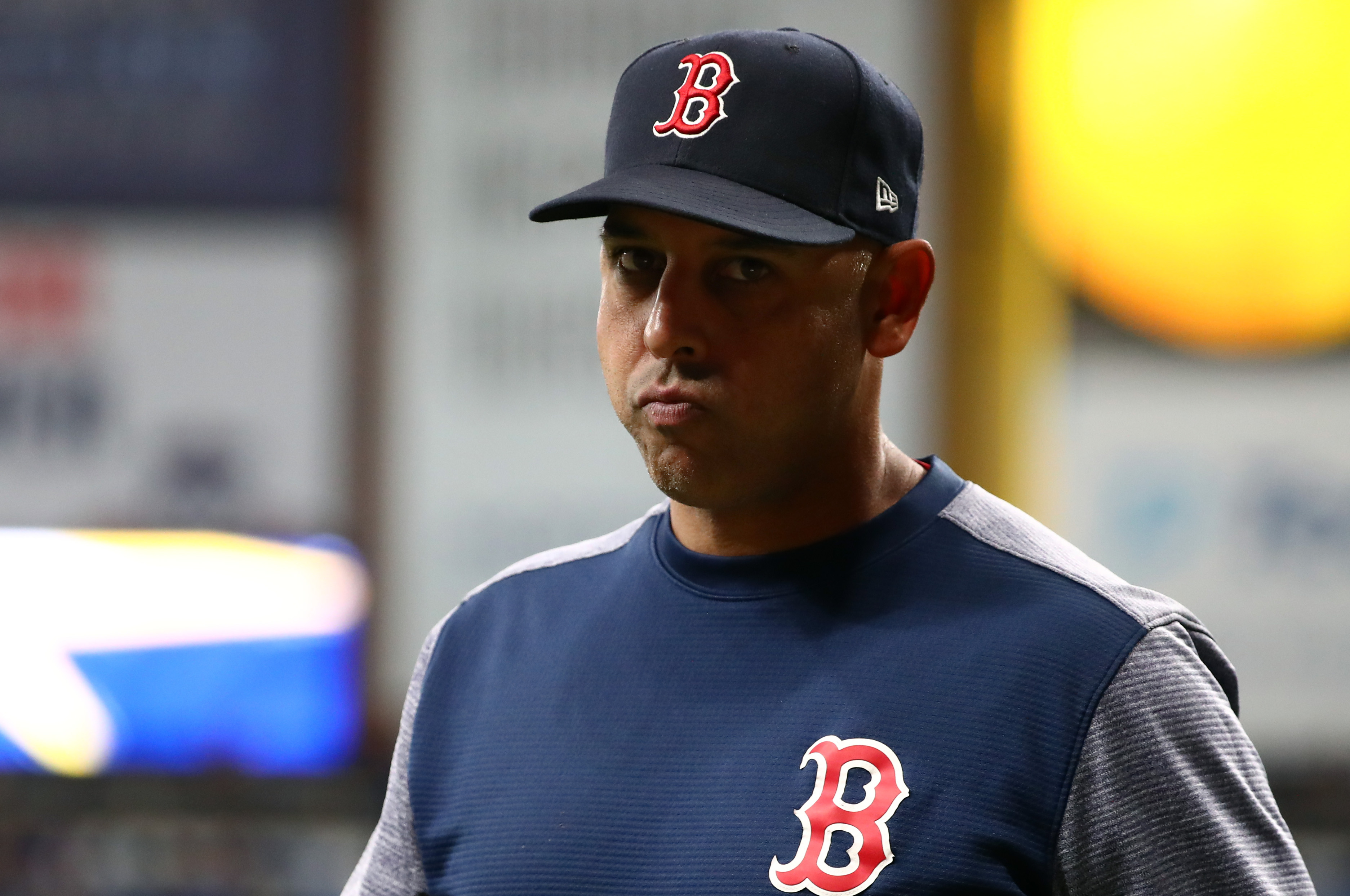 Sep 20, 2019; St. Petersburg, FL, USA; Boston Red Sox manager Alex Cora (20) at Tropicana Field. Mandatory Credit: Kim Klement-USA TODAY Sports / Kim Klement