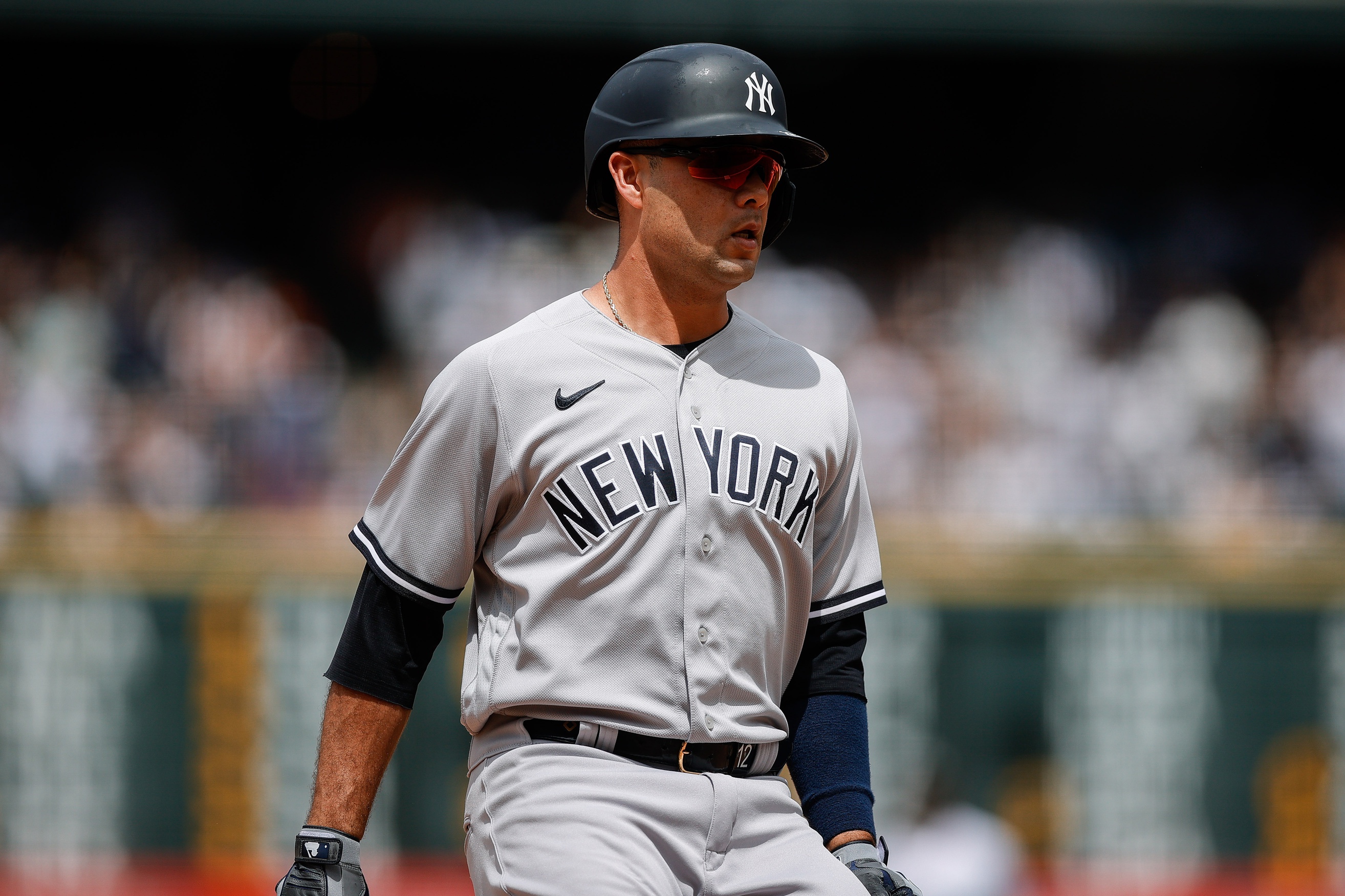 Yankees takeaways from Sunday's 8-7 loss to Rockies, including wild finish in extra inningsGerrit Cole struck out 11 in six innings7/16/2023, 11:22 PMRobert SanchezFreelance Editorial ProducerNew York Yankees left fielder Isiah Kiner-Falefa (12) reaches third on a single after a throwing error by the Colorado Rockies allowed two runs to score in the sixth inning at Coors Field. / Isaiah J. Downing-USA TODAY Sports