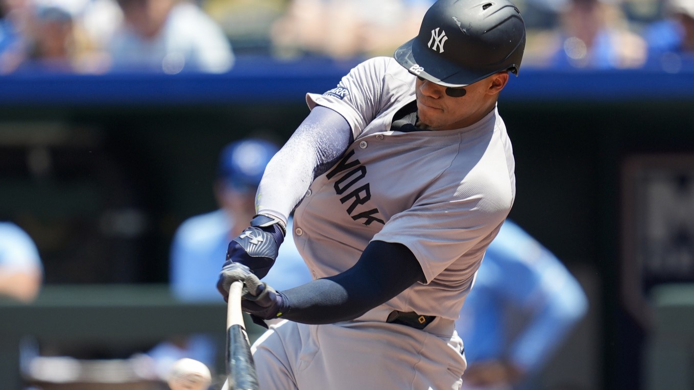 Clay Holmes blows fourth save of season as Yankees fall to Royals, 4-3This was just the second time this season the Yankees lost when leading after eight6/13/2024, 8:53 PMAlex SmithEditorial ProducerJun 13, 2024; Kansas City, Missouri, USA; New York Yankees right fielder Juan Soto (22) hits a single during the seventh inning against the Kansas City Royals at Kauffman Stadium. / Jay Biggerstaff-USA TODAY Sports