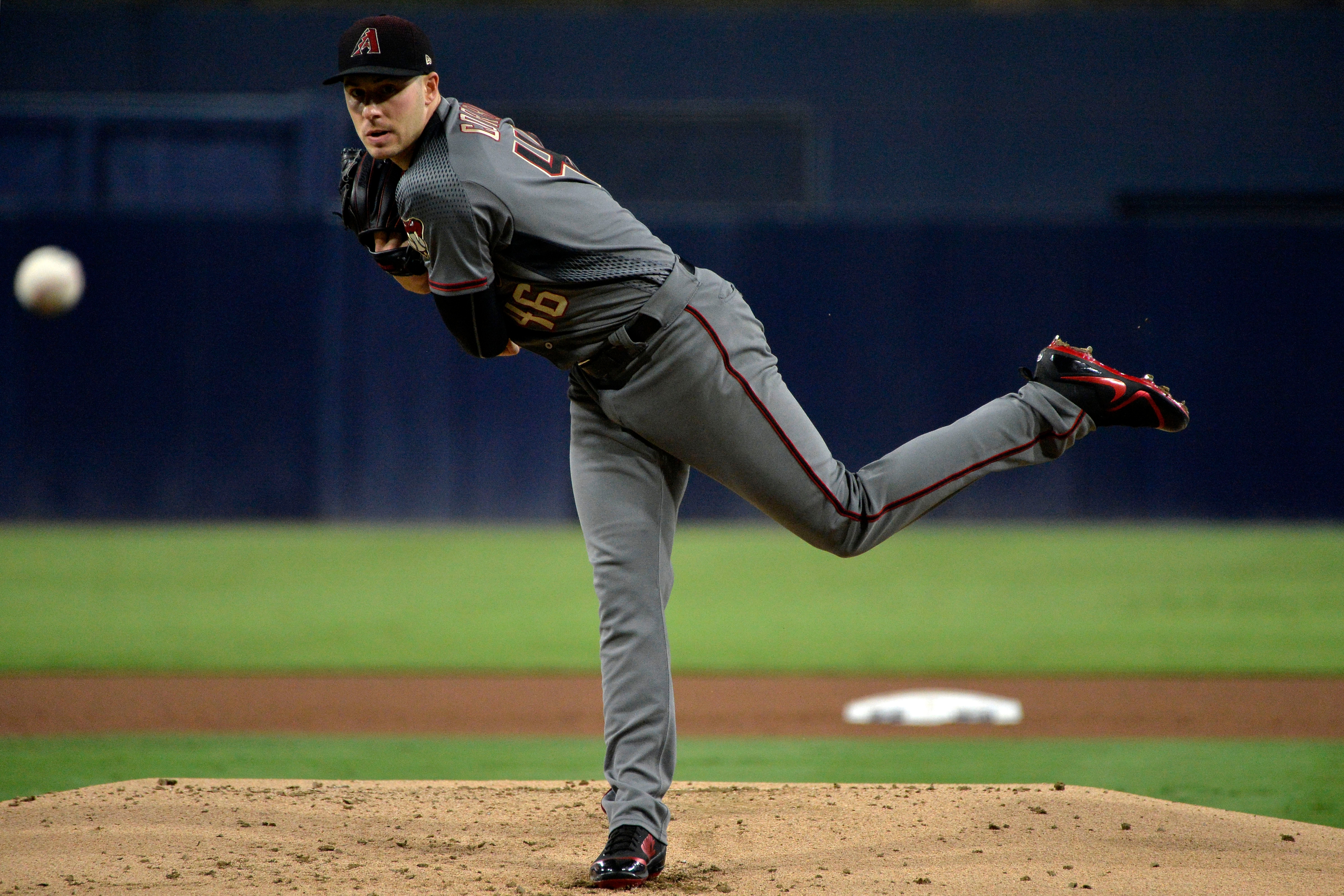 Sep 28, 2018; San Diego, CA, USA; Arizona Diamondbacks starting pitcher Patrick Corbin (46) pitches during the first inning against the San Diego Padres at Petco Park. Mandatory Credit: Jake Roth-USA TODAY Sports / Jake Roth