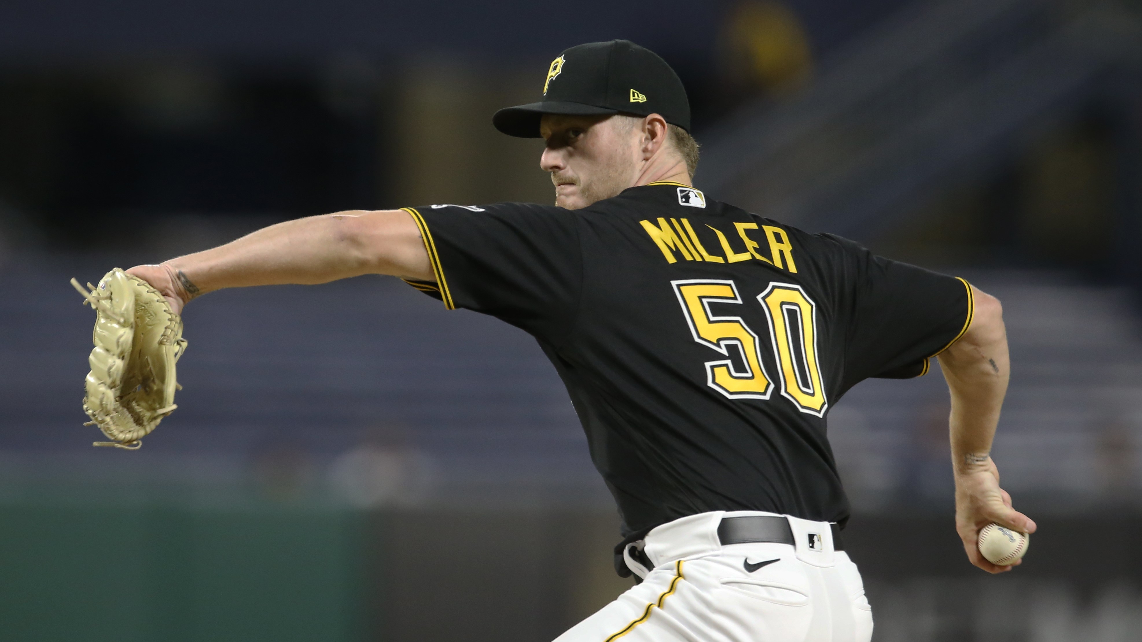 Sep 7, 2021; Pittsburgh, Pennsylvania, USA; Pittsburgh Pirates relief pitcher Shelby Miller (50) pitches against the Detroit Tigers during the fifth inning at PNC Park. Mandatory Credit: Charles LeClaire-USA TODAY Sports / Charles LeClaire-USA TODAY Sports