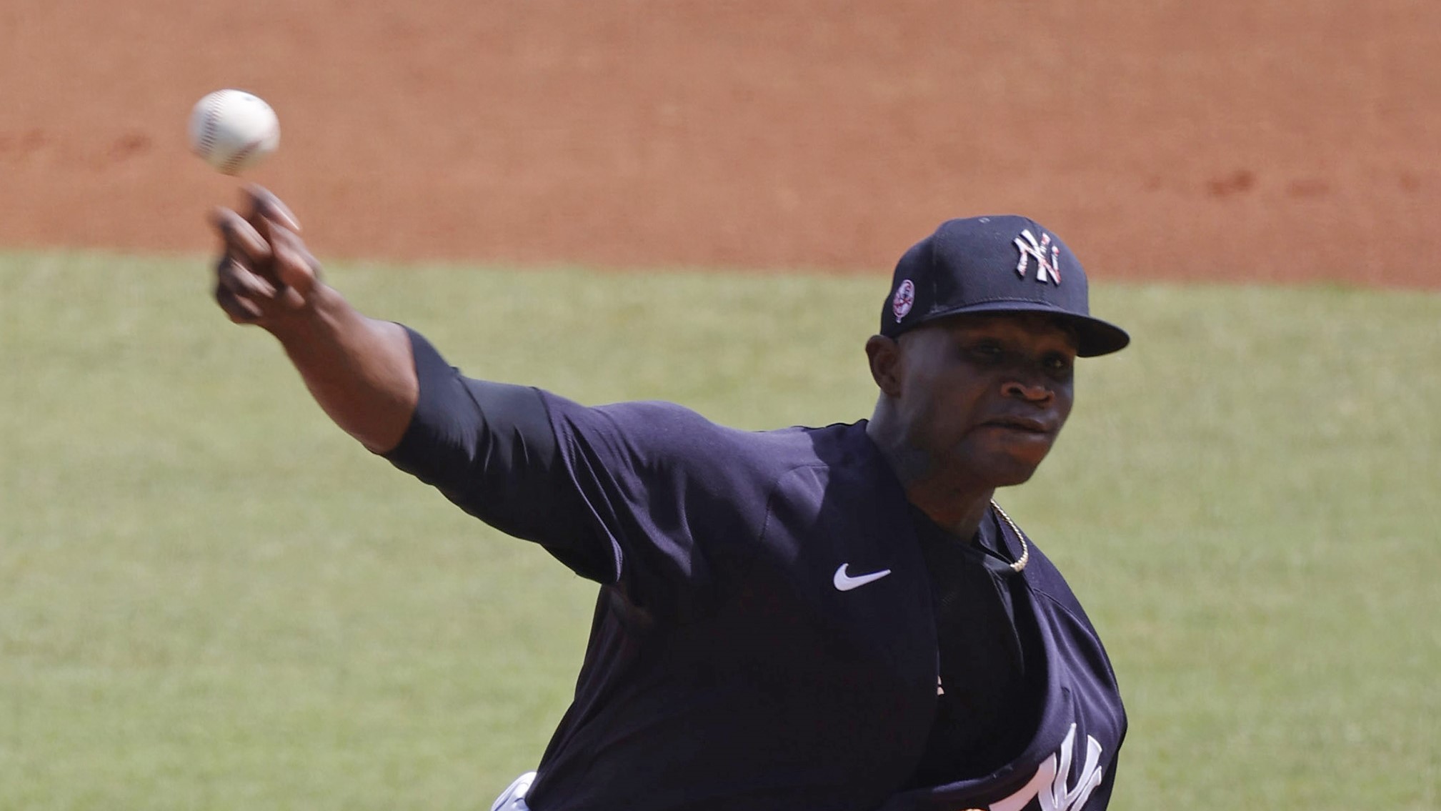 New York Yankees starting pitcher Domingo German (55) throws a pitch during the first inning against the Philadelphia Phillies at George M. Steinbrenner Field. / Kim Klement