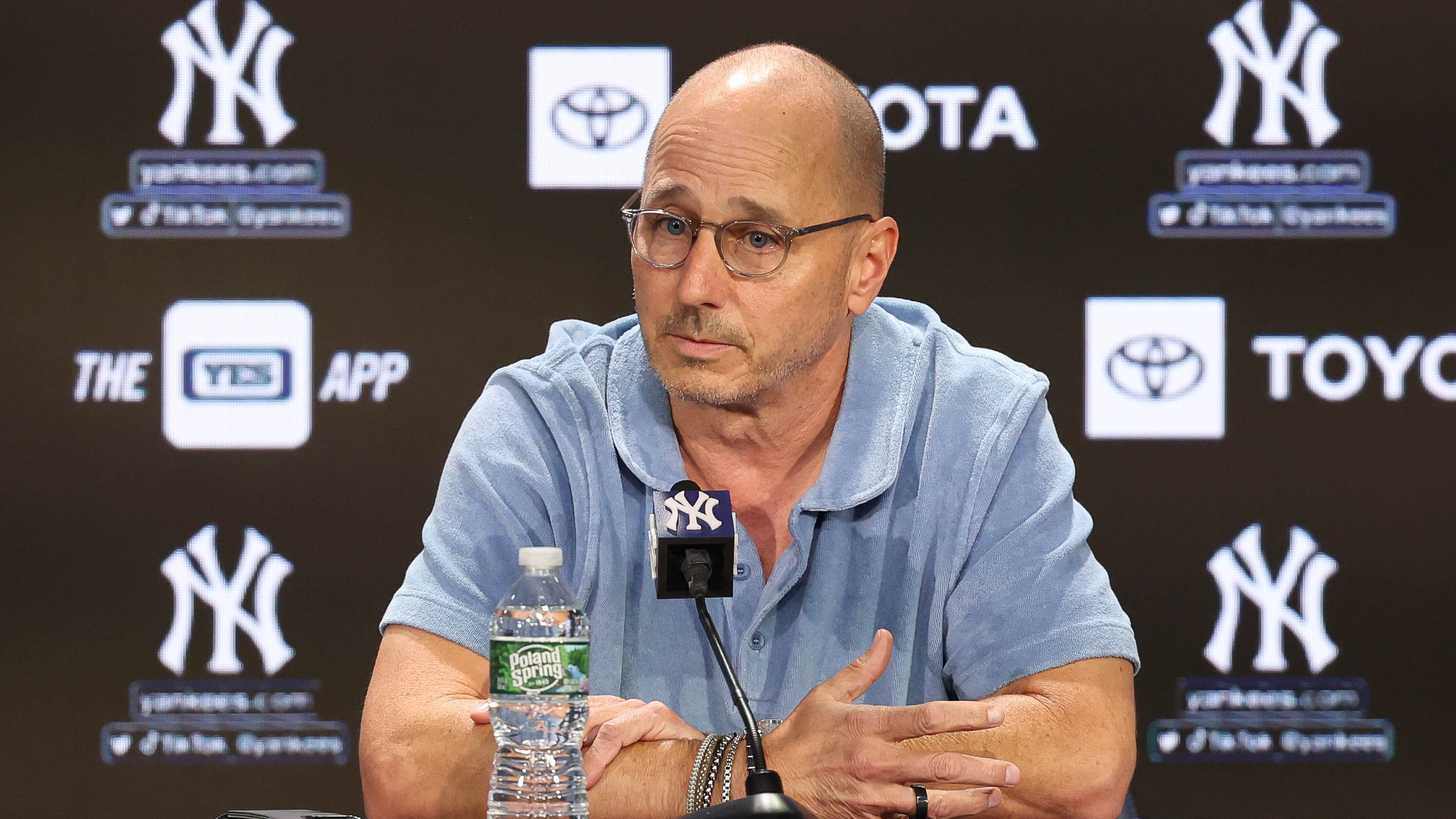 Nov 7, 2023; Scottsdale, AZ, USA; New York Yankees general manager Brian Cashman speaks to the media during the MLB General Manager's Meetings at Omni Scottsdale Resort & Spa / Mark J. Rebilas-USA TODAY Sports