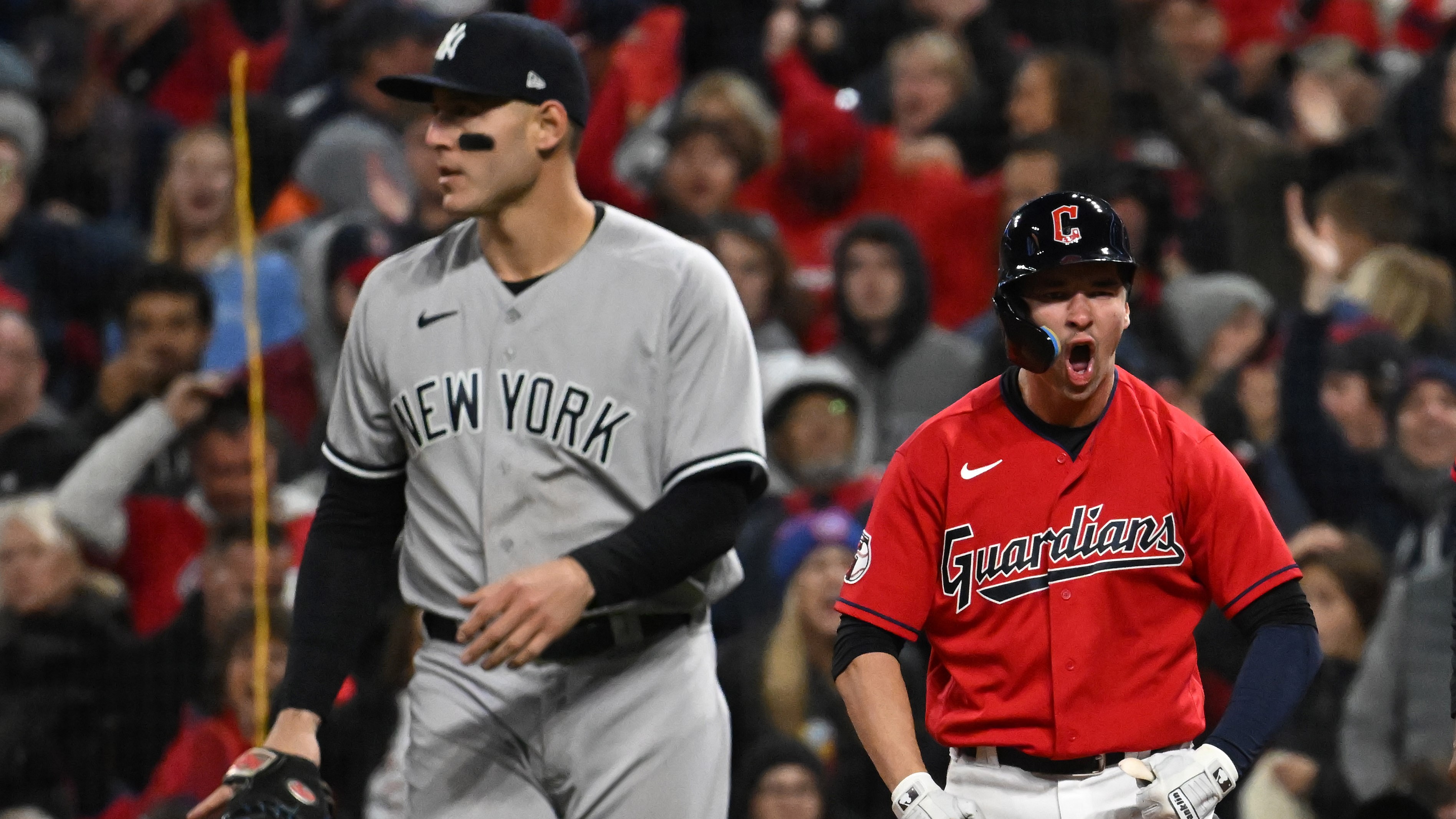 Yankees takeaways from 6-5 ALDS Game 3 loss to Guardians, including Cleveland's contact beating New York's powerThree home runs weren't enough as the Yanks face a 2-1 series deficit10/16/2022, 3:30 AMAnthony McCarronMLB freelance writer/on-air talentOct 15, 2022; Cleveland, Ohio, USA; New York Yankees starting pitcher Luis Severino (40) walks toward the dug out after being replaced on the mound in the sixth inning during game three of the NLDS for the 2022 MLB Playoffs against the Cleveland Guardians at Progressive Field. Mandatory Credit: David Richard-USA TODAY Sports / © David Richard-USA TODAY SportsOct 15, 2022; Cleveland, Ohio, USA; New York Yankees first baseman Oswaldo Cabrera (95) hits a two run home run against the Cleveland Guardians in the fifth inning during game three of the NLDS for the 2022 MLB Playoffs at Progressive Field. Mandatory Credit: David Richard-USA TODAY Sports / © David Richard-USA TODAY Sports