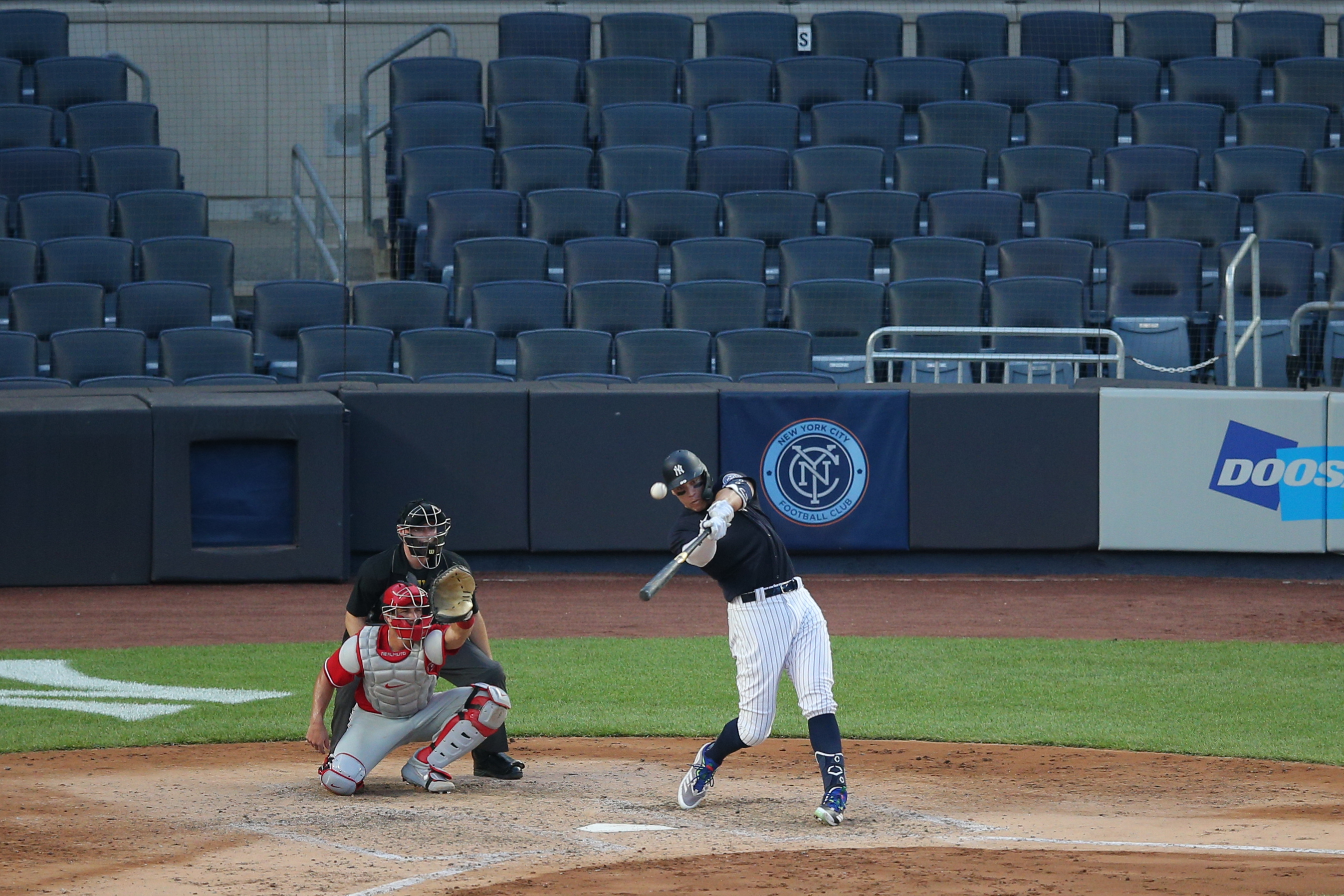 Yankees takeaways from Monday's 2-2 tie to Phillies, including Aaron Judge's bizarre home run7/21/2020, 1:30 AMScott ThompsonEditorial ProducerAaron Judge crushes home run off Vince Velasquez / USA TODAY Sports