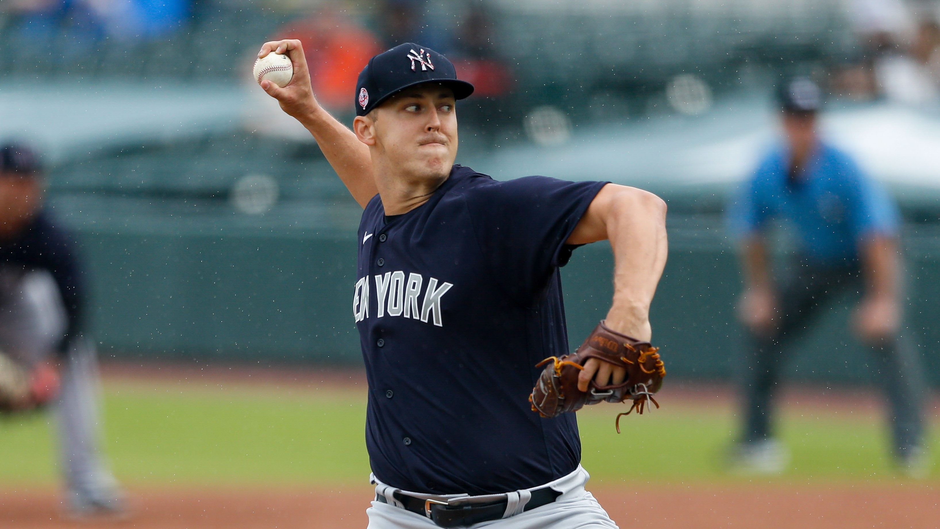 Mar 6, 2021; Bradenton, Florida, USA; New York Yankees starting pitcher Jameson Taillon (50) pitches in the second inning during spring training at LECOM Park. Mandatory Credit: Nathan Ray Seebeck-USA TODAY Sports / Nathan Ray Seebeck-USA TODAY Sports
