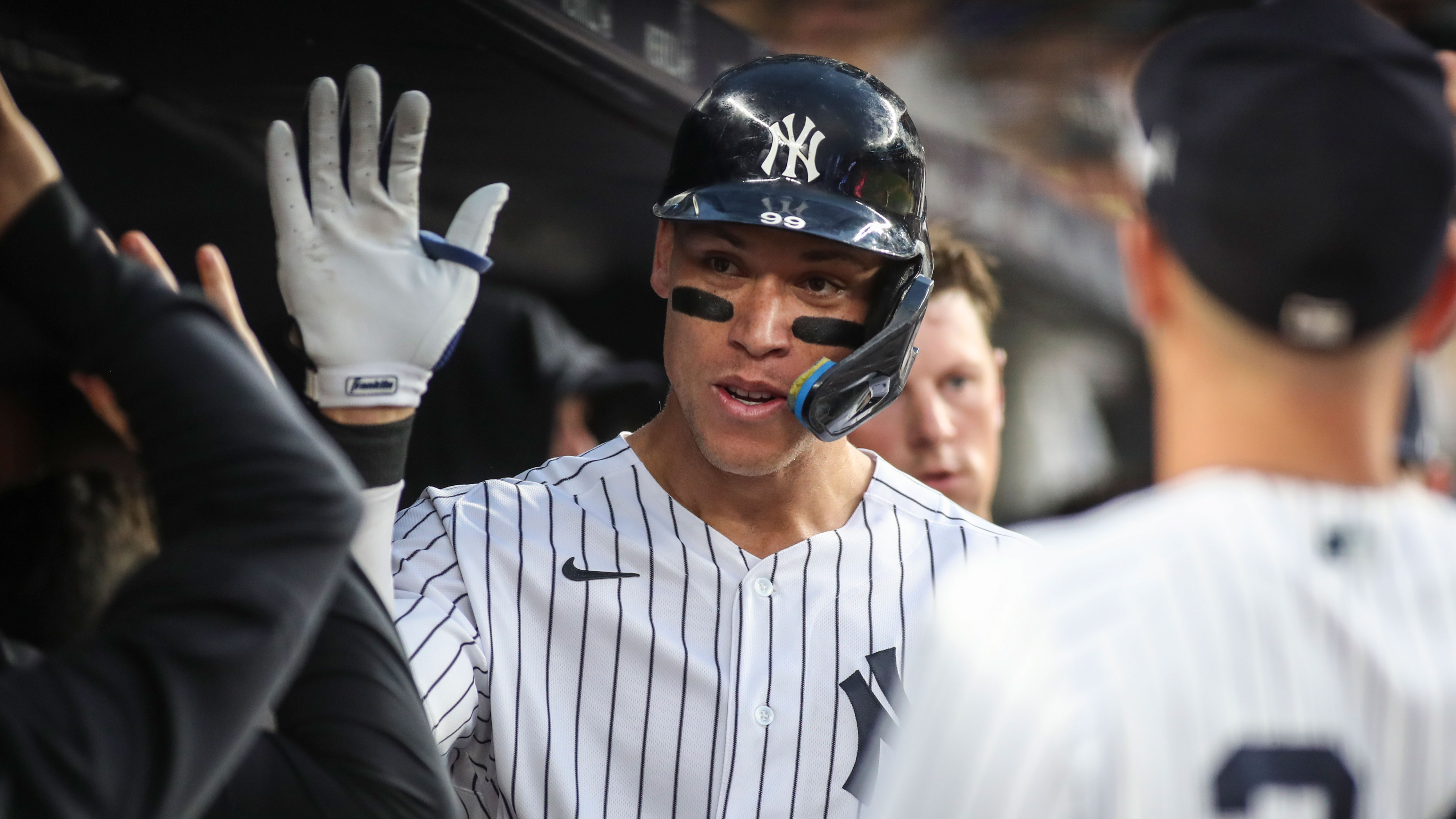 Yankees takeaways from Friday's 11-5 win over Royals, including another Aaron Judge monster nightJudge's grand slam -- his second homer of the game -- capped off eight-run eighth7/30/2022, 2:47 AMAlex SmithEditorial ProducerJul 29, 2022; Bronx, New York, USA; New York Yankees right fielder Aaron Judge (99) celebrates in the dugout after hitting a two run home run in the third inning against the Kansas City Royals at Yankee Stadium. / Wendell Cruz-USA TODAY Sports