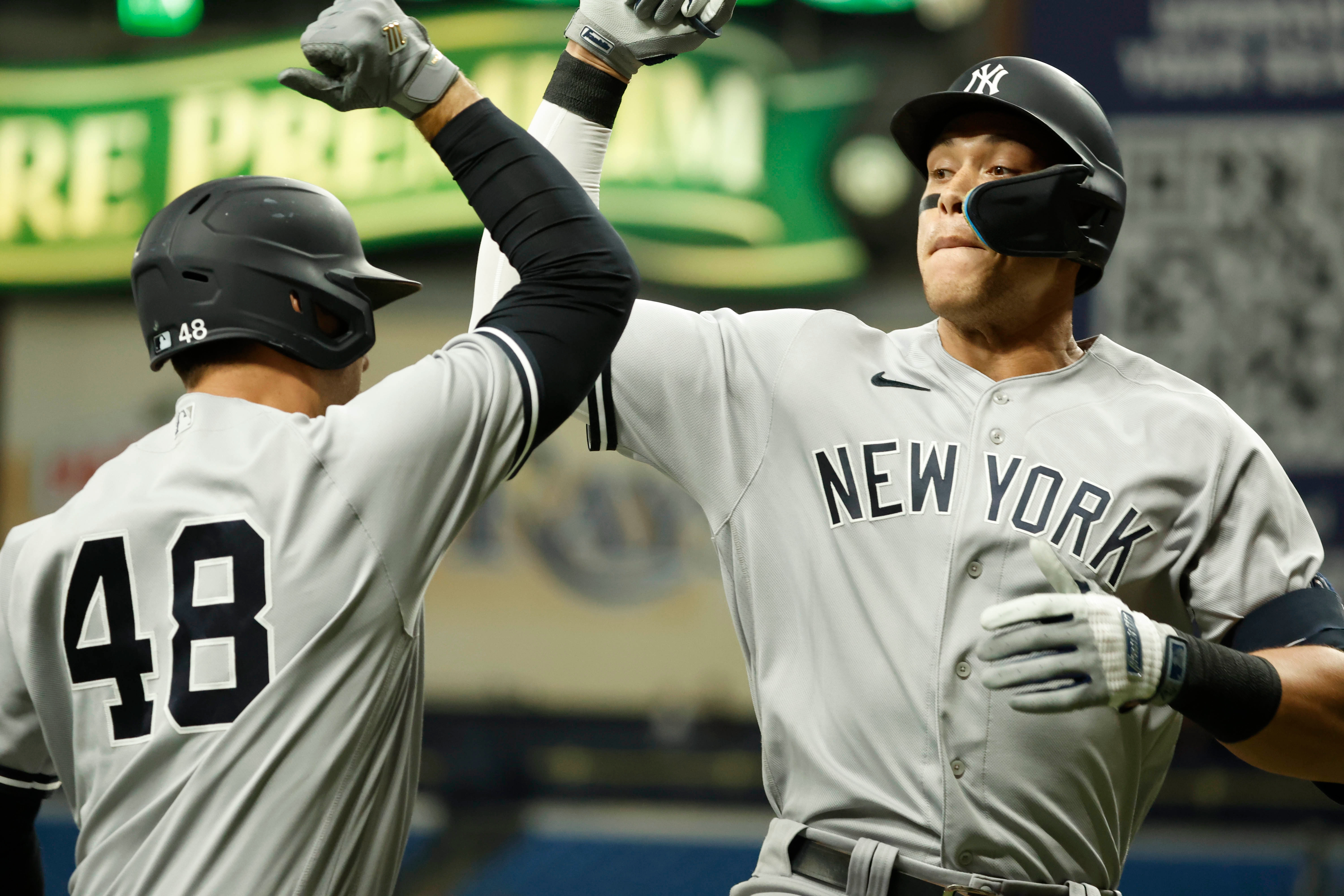 Yankees takeaways from Wednesday's 5-4 win over Rays, including Jose Trevino's late go-ahead blastAaron Judge went deep two more times6/23/2022, 2:47 AMRobert SanchezFreelance Editorial ProducerNew York Yankees right fielder Aaron Judge (99) is congratulated by first baseman Anthony Rizzo (48) as he hits a home run during the fourth inning against the Tampa Bay Rays at Tropicana Field. / Kim Klement-USA TODAY Sports