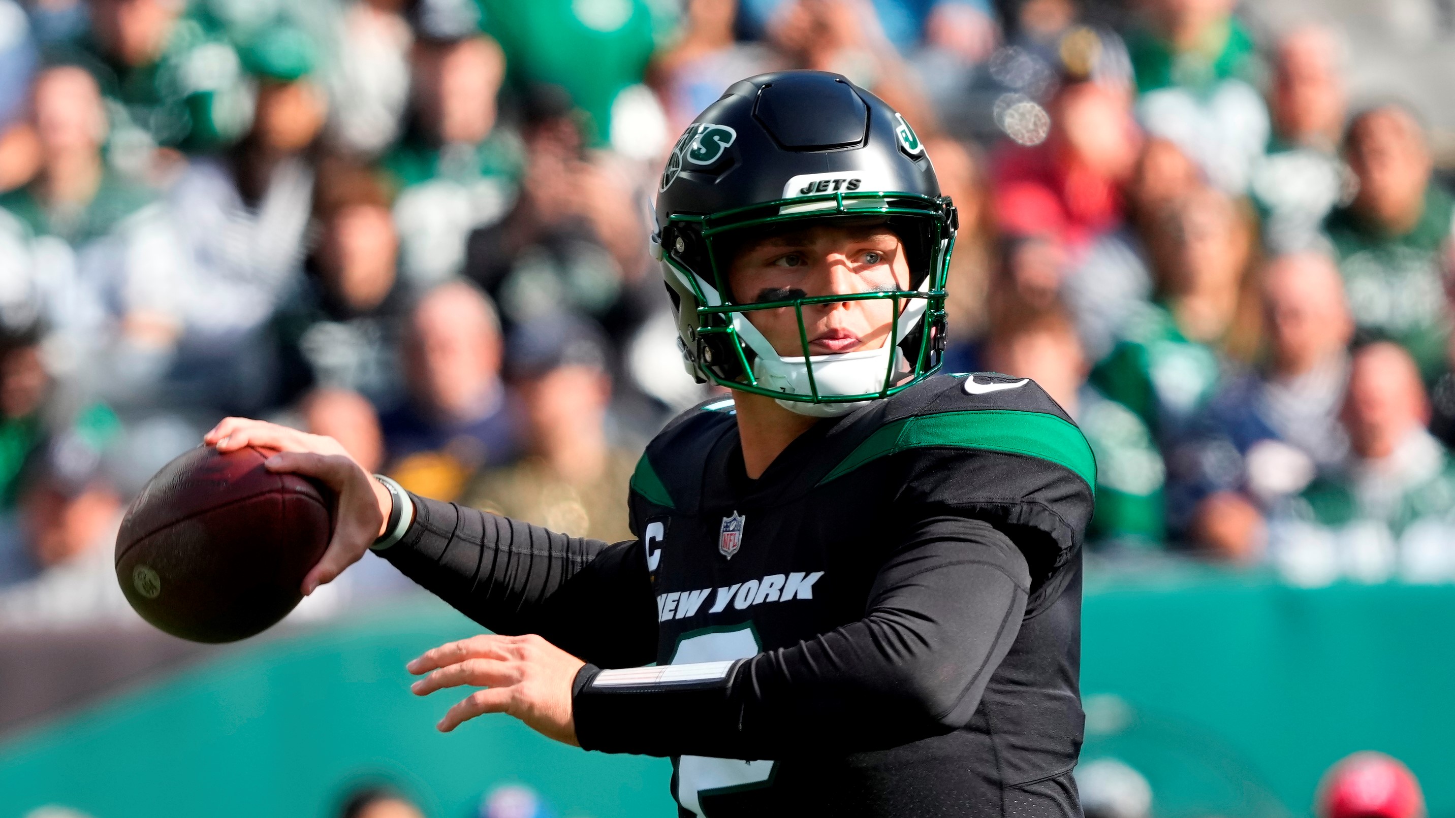 Zach Wilson must rise to occasion for playoff-ready Jets after alarming setback vs. PatriotsIf this was truly a measuring stick, the Jets should be in a full-on panic10/31/2022, 12:04 AMConnor HughesNFL InsiderOct 30, 2022; East Rutherford, New Jersey, USA; New England Patriots safety Devin McCourty (32) runs back an interception against the New York Jets during the fourth quarter at MetLife Stadium. Mandatory Credit: Brad Penner-USA TODAY Sports / © Brad Penner-USA TODAY SportsOct 30, 2022; East Rutherford, New Jersey, USA; New York Jets head coach Robert Saleh reacts during the second quarter against the New England Patriots at MetLife Stadium. Mandatory Credit: Brad Penner-USA TODAY Sports / © Brad Penner-USA TODAY SportsNew York Jets quarterback Zach Wilson (2) scrambling in the second half against the New England Patriots / Robert Deutsch-USA TODAY Sports