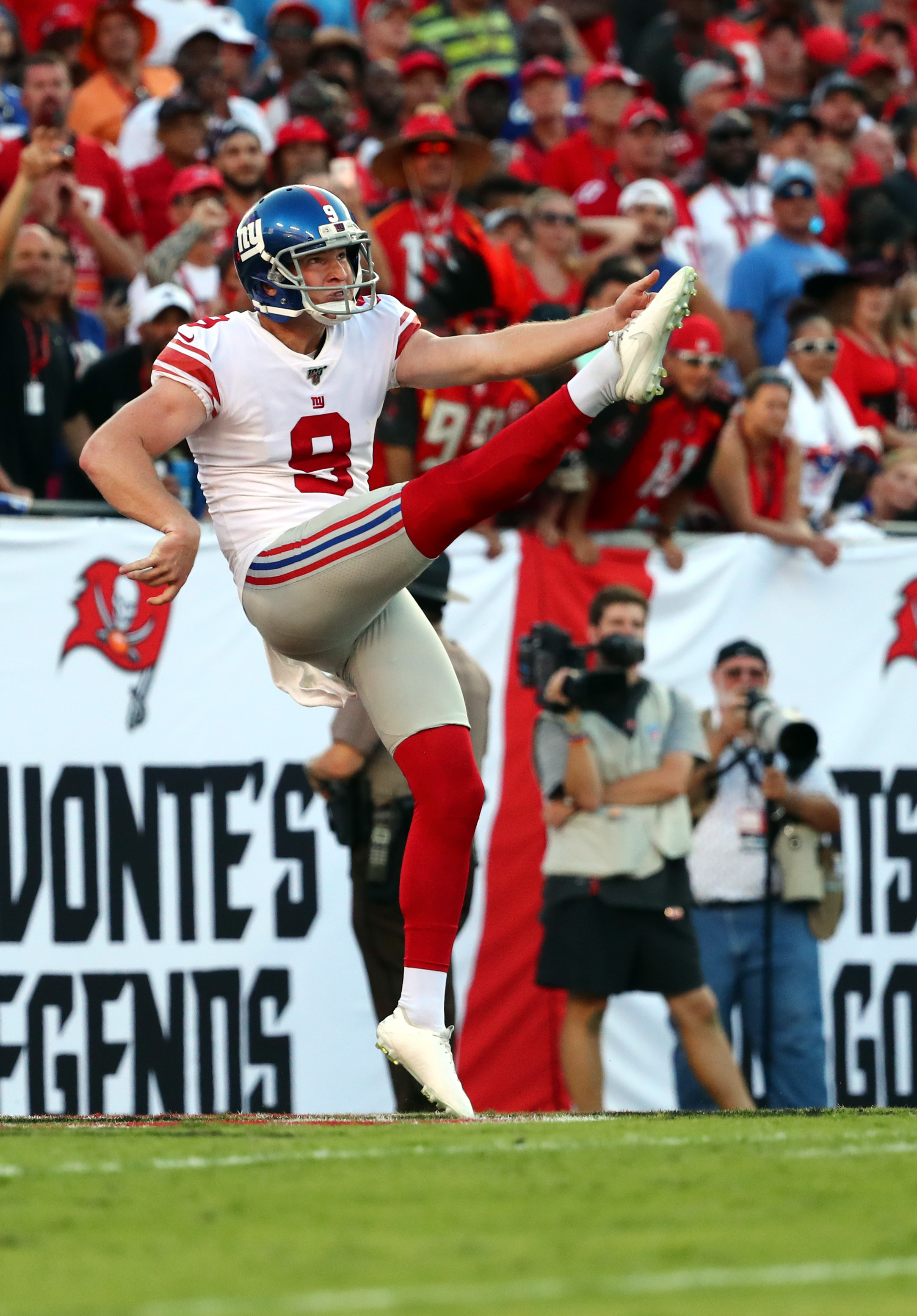 Sep 22, 2019; Tampa, FL, USA; New York Giants punter Riley Dixon (9) punts the ball during the second half at Raymond James Stadium. Mandatory Credit: Kim Klement-USA TODAY Sports / Kim Klement